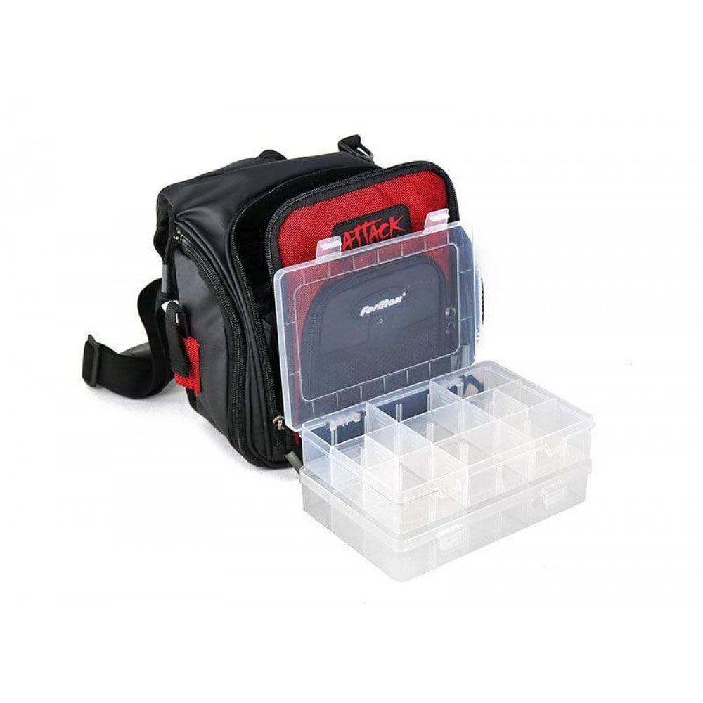 Varaličarska torba dimenzija 25x11x27 cm koja se nosi na grudima, opremljena sa 2 providne kutije dimenzija 20x13x4 cm. Poseduje trodimenzionalni džep napred, 2 džepa na bokovima, 2 dvodimenzionalna džepa u unutrašnjosti, mrežasti džep napred i ležište sa čičak trakom za alatku.