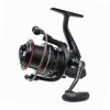 Team Daiwa Feeder 4012QD – Koliko Daiwa pažljivo prati potrebe tržišta i uvažava zahteve ribolovaca odlično svedoči ova mašinica nastala na osnovu čuvene Daiwe BG, i to veoma pažljivim i promišljenim redizajniranjem. Naime, TD Feeder 4012QD takođe ima robusno metalno “Hardbodyz” kućište kao i BG model, ali tu je sada i Air Rotor od Zaiona. Nova feeder mašinica dobila je takođe i novu metalnu špulnu većeg prečnika opremljenu preciznom kočnicom sa QD stezečem (“Quick Drag”) za brzo pritezanje i otpuštanje kočnice, a na njoj je takođe i odlično odrađen klip za najlon koji ga sigurno neće oštećivati. Pošto fideraši uglavnom vole mašinice sa većom vučnom snagom – ovaj model dobio je sada prenos od 4.9:1, ali i jaku i na dugme sklopivu ručicu sa udobnim gumenim rukohvatom. Tu su naravno i 6+1 kuglični ležaj, Twist Buster II vođica strune i debela i robusna Air Bail žica preklopnika. I sve to za samo 14.990 dinara! Mašinica u ruci deluje zaista moćno i kvalitetno i jako lepo izgleda u ovoj metalno-sivoj boji, tako da uz sve navedeno i s obzirom na zaista pristupačnu cenu za ovakav kvalitet – verujemo da je zaista pun pogodak za ljubitelje ove vrste ribolova i kvalitetnijeg pribora!