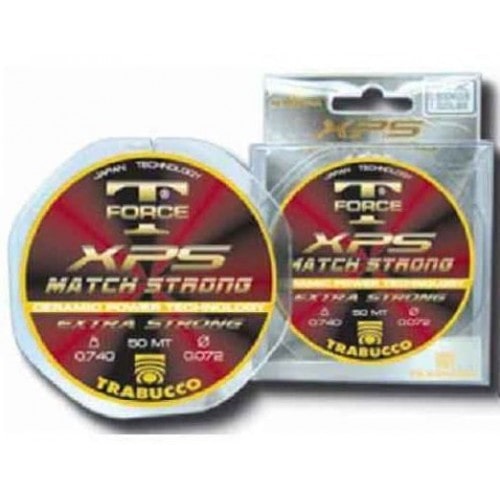 Trabucco T- Force XPS Match Strong Ovaj potpuno novi najlon je nastao kao rezultat tehnološkog istraživanja i napretka u proizvodnji polimera. On je proveren sa mikro senzorima da se obezbedi apsolutno tačan prečnik. Ovaj monofil ima neprevaziđenu mekoću i snagu na čvoru. Potpuno providan, savršen je za bilo slatkovodni ili morski ribolov. Paralelno namotavanje tokom proizvodnje eliminiše uvrtanje što može ugroziti kvalitet.Idealan izbor za predveze u feeder,match i ribolovu sa štek štapovima.